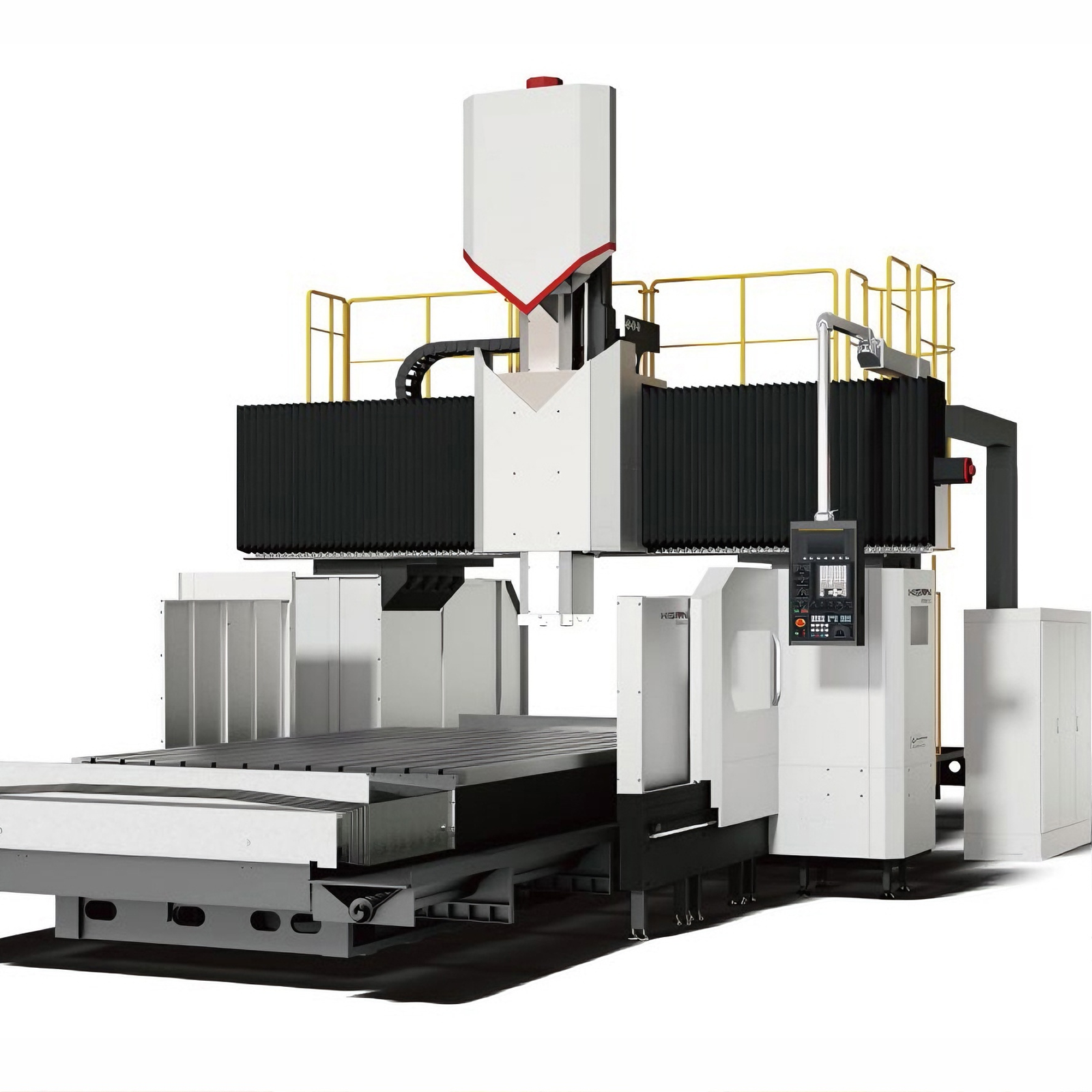 Multi-purpose double column machining center. The DMB2030 is a multi-purpose, double-column machining center that can perform 5-axis machining with the attachment of a universal head. It has a powerful spindle of over 1000Nm, a ram-type structure with an eight-sided support structure, and a double ball screw, which make it suitable for diverse machining applications. Moreover, to enhance precision, it incorporates a ball screw support bearing cooling system and adopts thermal deformation compensation as a standard, making it suitable for high-precision machining.